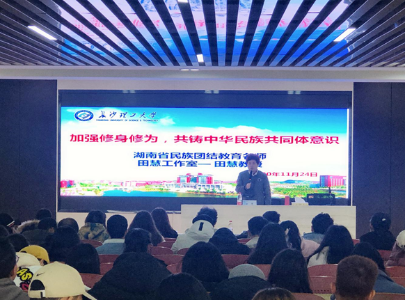 为贯彻学习党的十九届五中全会精神,11月24日下午,学工部邀请湖南省民族团结教育名师、湖南省大学生道德素质提升工程精品项目--田慧工作室--首席专家田慧教授为威廉体育200余名民族学生举行了题为“加强修身修为,共铸中华民族共同体意识”的讲座。威廉体育民族学生教育管理专职辅导员地里努尔、木拉迪以及新疆内派教师热米拉老师参加。