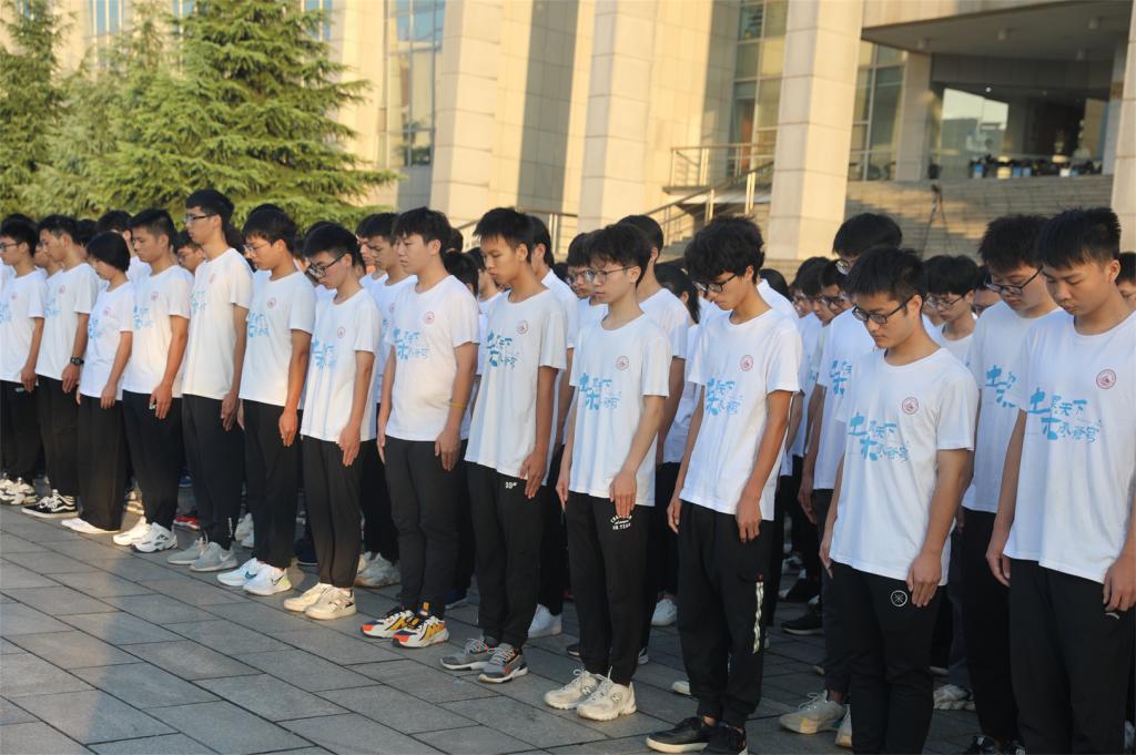清晨7点,国旗班队员们迈着整齐而坚定的步伐护送五星红旗入场。伴随着庄严的国歌声,五星红旗在习习晨风中冉冉升起。在场师生高唱国歌,向国旗行注目礼。国歌唱毕,全体肃立,缅怀先烈,向人民英雄致敬。