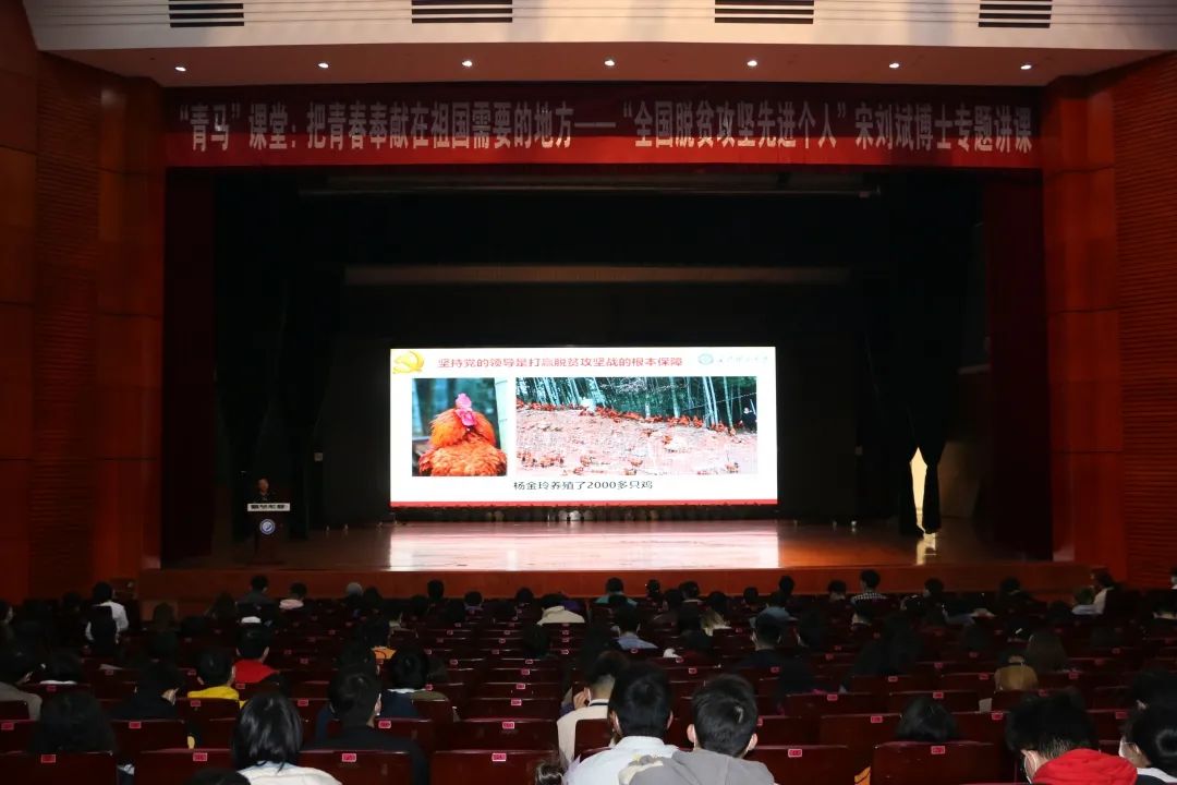 3月14日上午,威廉体育williamhill第十一期青年马克思主义者培训班在云塘校区大会堂开课,本次课程邀请了“全国脱贫攻坚先进个人”宋刘斌主讲,主题为“把青春奉献在祖国需要的地方”。校团委副书记陈璐莎、兼职副书记彭怡峰、潘枝花出席,校“青马”班、“雄鹰”班及来自各学院报名听课的近600名长理学子到场聆听。