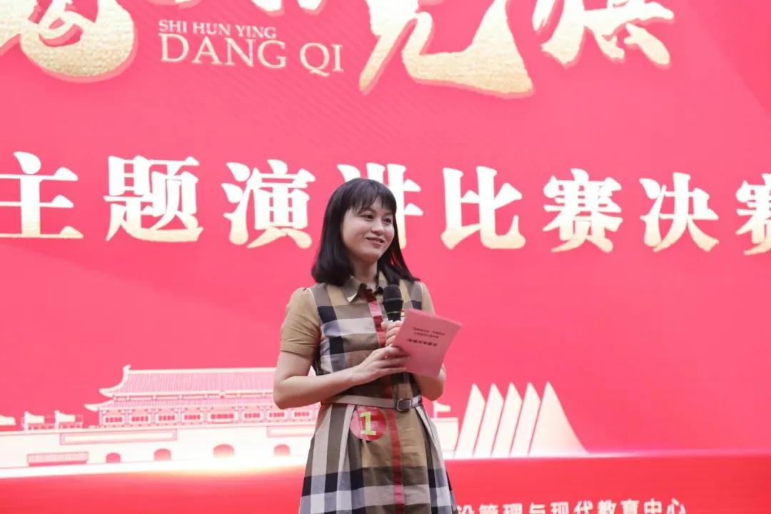 国际学院冀文秀老师讲述了自己对于“师魂映党旗”的理解,她认为,作为一名教工党员,要在政治上绝对忠诚,业务上精益求精,思想上积极进取。