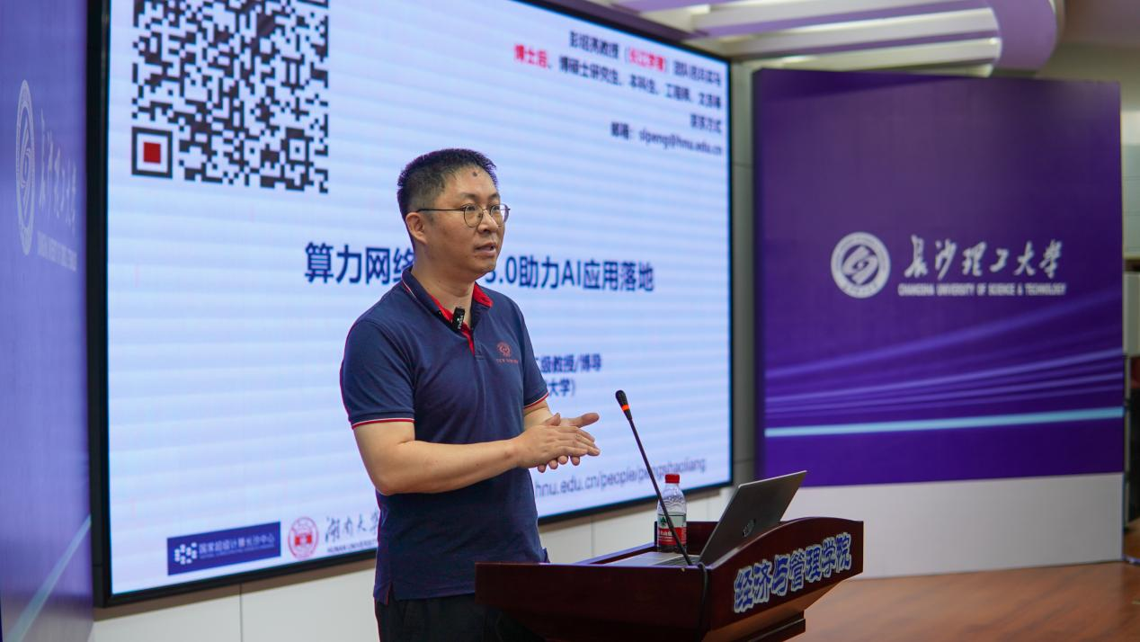 5月20日上午,计通学院在金盆岭校区12教200教室举办了主题为“Web3.0时代下的生成式人工智能大模型”的讲座。本次讲座由国家超级计算长沙中心副主任、长江学者、二级教授博导彭绍亮担任主讲嘉宾,软件2302班班主任赵阳洋以及22级和23级的部分学生参加了此次讲座。