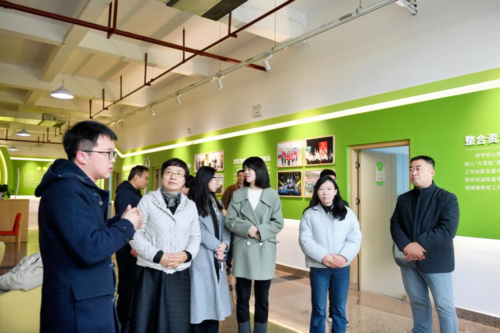 双方还就学生工作评价体系、辅导员考核、学风考风建设等方面展开深入探讨。会后曹玉玲一行还参观走访了大学生心理健康教育中心、“一站式”学生社区、“三全育人”教育基地等地。