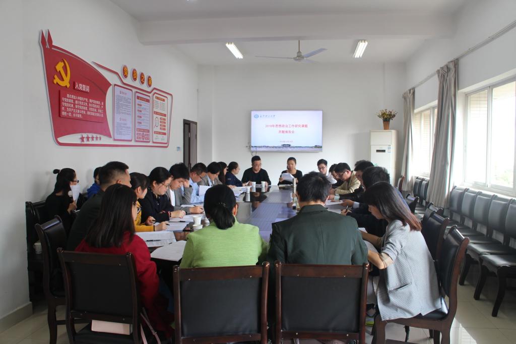 10月18日下午,学生工作部(处)在云塘校区二办公楼B404会议室举行2018年思想政治工作研究课题开题报告会。副校长谈传生教授、马克思主义学院副院长张明海副教授出席,全体课题负责人参会。开题报告会由学生工作部(处)长艾楚君副教授主持。