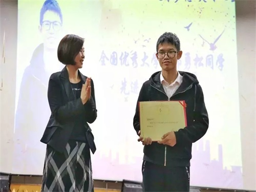 校党委委员、宣传部部长方琼为邹勇松颁发了“威廉体育williamhill2017大学生年度人物”证书。邹勇松衷心感谢了学校的培养和领导老师的关心,寄语2018级全体同学努力学习、不畏艰难,奋力实现人生梦想。
