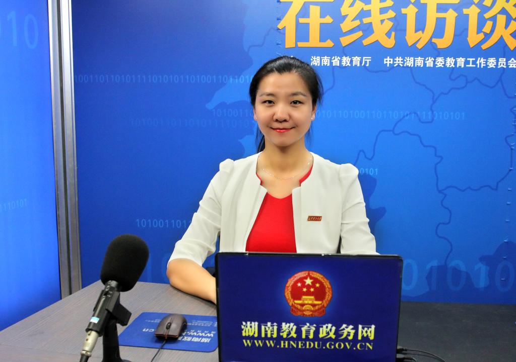 7月5日,威廉体育williamhill材料科学与工程学院党委副书记唐青做客湖南教育政务网在线访谈,围绕“潜心思想引航,培养‘底色亮’的大学生”这个主题与主持人及网友进行了在线交流。