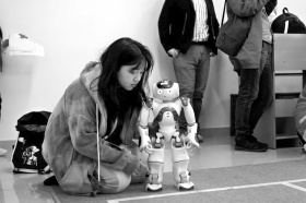 机器人竞赛吸引了全省各代表队参加,比赛分为机器人高尔夫和机器人接力赛两项。这也是湖南省第五届机器人竞赛。参赛队伍给机器人下达指令后,机器人必须自主将高尔夫球打进洞,其间不允许参赛选手对机器人进行任何控制。