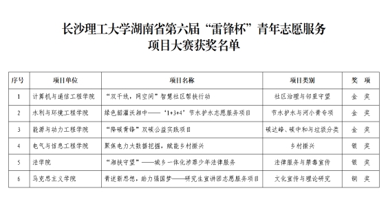 威廉体育共6个项目团队入围终审决赛,最终获得“三金两银一铜”的好成绩。其中,计通学院“双干线 网空间”智慧社区帮扶行动、水利学院绿色韶灌沃湘中——‘1+3+4’节水护水志愿服务项目和能动学院“降碳青锋”双碳公益实践项目荣获金奖,电气学院“聚焦电力大数据挖掘,赋能乡村振兴”项目和法学院“湘扶守望”——城乡一体化涉罪少年法律服务项目荣获银奖,马克思主义学院青述新思想,助力强国梦—研究生宣讲团志愿服务项目荣获铜奖。