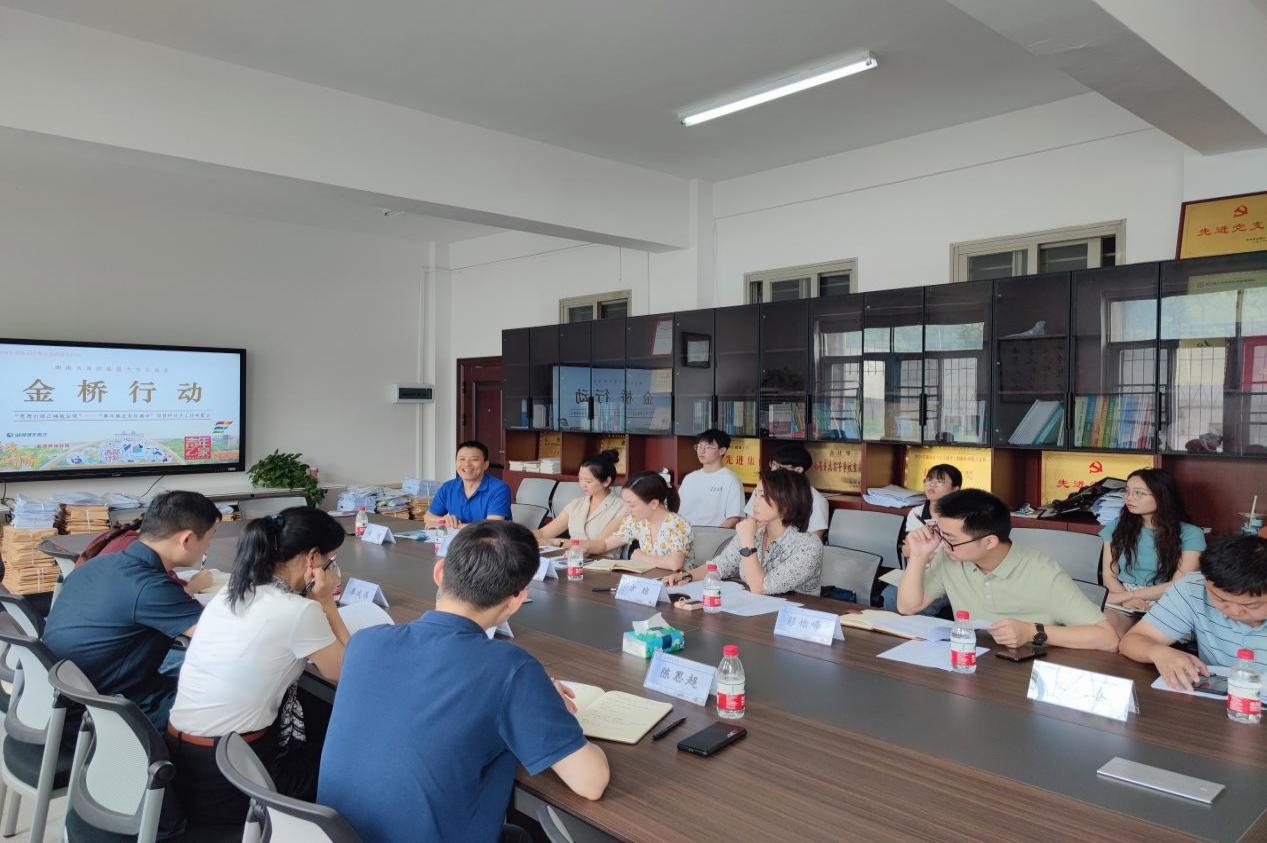 7月11日上午,共青团湖南省委学校部部长陈艳英、学校部副部长廖成伟、学校部三级调研员陈思超等一行来校调研“金桥行动”工作开展情况,并于金盆岭校区办公大楼205会议室召开“金桥行动”——助力“青年就业友好城市”项目研讨会。校党委委员、宣传部长方琼,经管学院党委副书记唐青、经管学院黄维教授、创新创业教育学院田双喜副教授、校团委兼职副书记彭怡峰、经管学院团委书记何涛等陪同参与调研会,会议由校团委副书记杨晨主持。