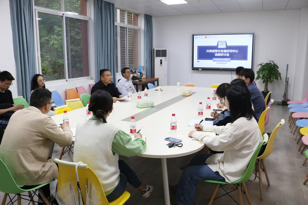 在交流研讨环节,彭怡峰分享了青年发展研究中心的拟选题方向。为此,陈浩凯指出,课题选择要做好调查研究,围绕如何巩固党执政青年基础进行选题,不断提升共青团工作的引领力、组织力、服务力和大局贡献度。袁云才指出,青年研究工作要结合各学院特色工作实际,切勿盲目求“大”,要踏实找“小”,以小见大,用理论指导实践,用实践论证理论。此外,与会人员就如何选题、如何策划、如何调研、书写注意事项等问题进行了讨论。