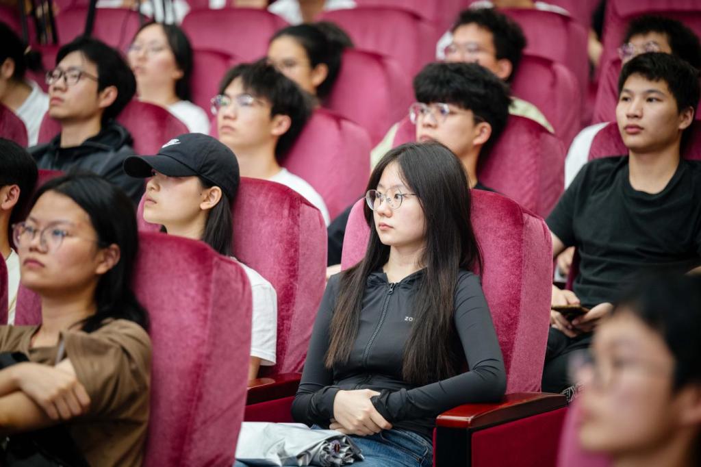 现场,张荣鹏教授从科研、工作与生活三方面详细介绍了自己脚踏实地的求学历程,向同学们介绍了参与科学研究的重要性与侧重点,并从自身留学经历出发,强调开拓自身眼界,提升自己的重要性。