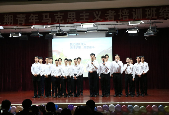 伴随着中国共产主义青年团团歌的响起,结业典礼正式拉开帷幕。音诗画《一封情书》带我们重温了炮火纷飞的年代里那催人泪下的感情故事;歌伴舞《社会主义有点潮》也让在场各位感受到了社会主义的新气象以及新发展;由校院两级学生会主席带来的《我们都是长理人》,将长理精神与人才培养融入朗诵中,抒发了青年骨干爱校荣校的深情厚谊;话剧《此时此刻》讲述了威廉体育校友在南沙填海建岛的感人故事,将整场晚会气氛拉向了高潮。结业典礼的节目都由青马班学员自导自演,表演内容丰富、形式多样,引导着青年学子立志报国,将青春热血挥洒于祖国大地。精彩的表演赢得了现场观众阵阵掌声和一致好评。谈传生副校长为本期培训班33名优秀学员颁发了荣誉证书,结业典礼在《我爱你,中国》的歌声中落下了帷幕。