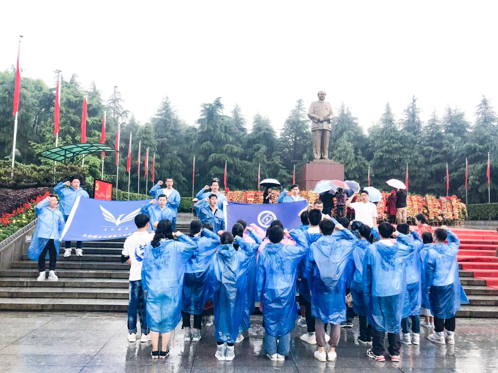 雄鹰班学员们在实践中成长,先后经历了曝晒和暴雨的极端天气的考验,经受住了长途跋涉对精神和身体的双重极限挑战。行进期间,旗帜飞扬,一路歌声不断,大家利用休息时间开展了红色故事分享会,原创诗歌创作,实时打卡等活动,气氛活跃,斗志昂扬。用脚步丈量青春,切身感受湖南的发展与变化。没有人掉队,没有人退缩,比预计时间更是提前了半小时抵达“红色圣地”韶山。在韶山,开展了系列爱国主义教育。向毛泽东铜像献花,在大雨中庄严宣誓,“翱翔九天不朽青云之志,逐梦一心建功时代辉煌!”誓词掷地有声!《睹主席遗物,学伟人风范,做合格党员》的精品党课滋养润心。在交流分享会上,经管学院杜逢清提到,“这将成为我人生最重要的记忆,在这样一个交通发达的时代,我们体验了一次长途跋涉的艰辛,想到红军长征二万五千里,真切的让我们感受到了信仰的力量。在雨中我们互相搀扶,互相鼓劲,让我倍感温暖。”