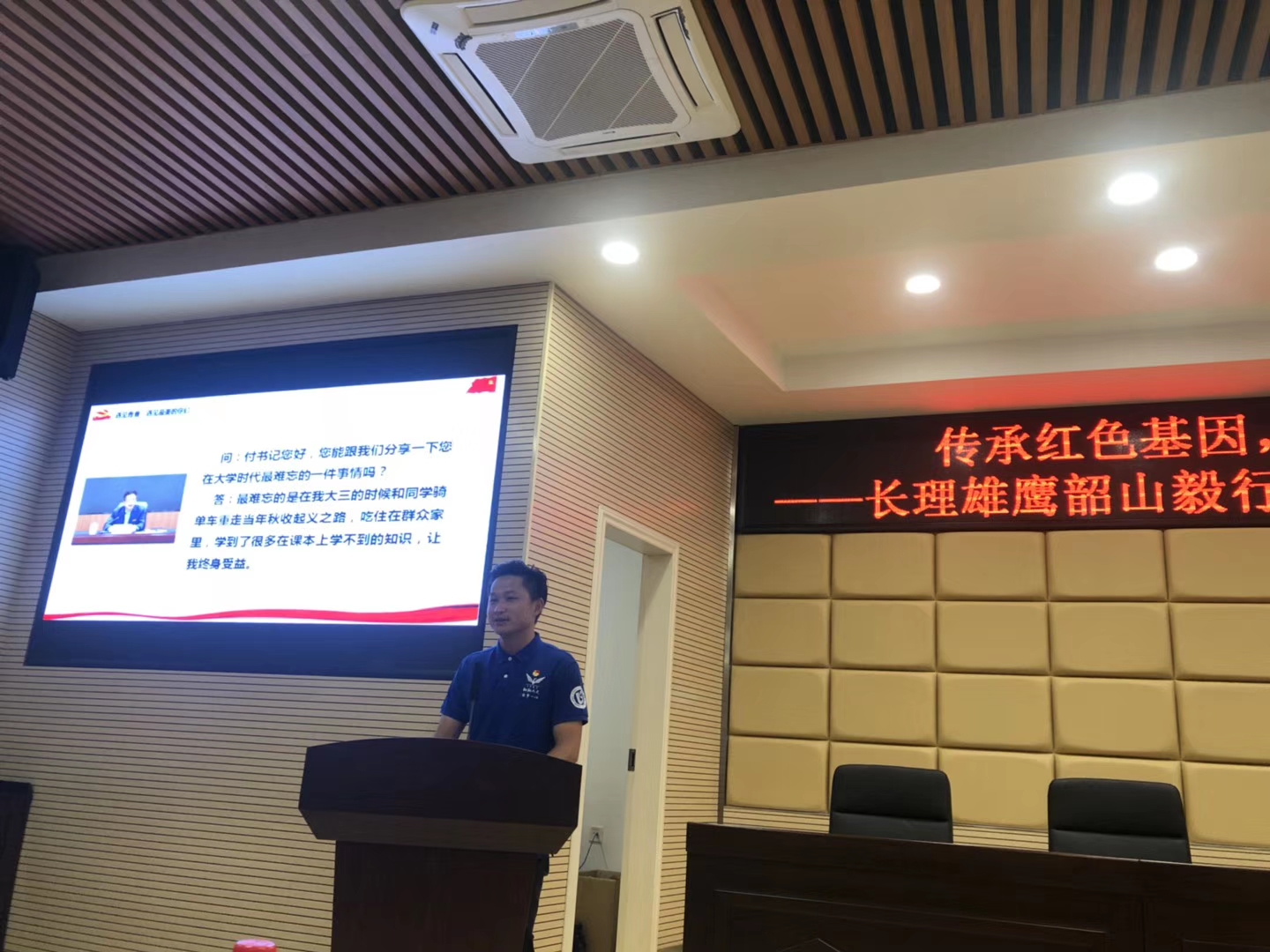 分享会伊始,播放了主题为“信仰为伴、毅路同行”的视频,回顾了雄鹰班韶山毅行的点滴故事。紧接着,六名雄鹰班代表结合自身实践经历依次分享了“韶山毅行”的收获与感悟。用脚步丈量青春,用实干承载梦想,雄鹰班学员充分展示了长理雄鹰有梦想、有朝气、敢担当、讲奉献的良好风貌。随后,雄鹰班班长齐铁钧代表雄鹰班全体学员就习近平在纪念五四运动100周年大会上的讲话精神向全校师生发起倡议,激励广大长理学子成为有理想有抱负的青年,成为有深厚爱国情怀的青年,成为有伟大创造力的青年,为祖国的发展贡献青春力量。最后,雄鹰班学员向此次韶山毅行随行的老师和工作人员表达了最真挚的谢意,并赠送了有纪念意义的明信片。