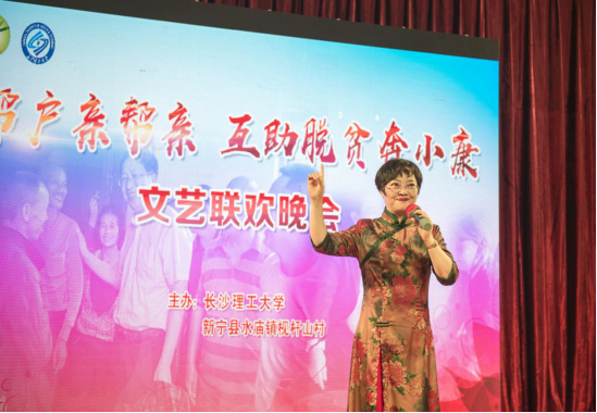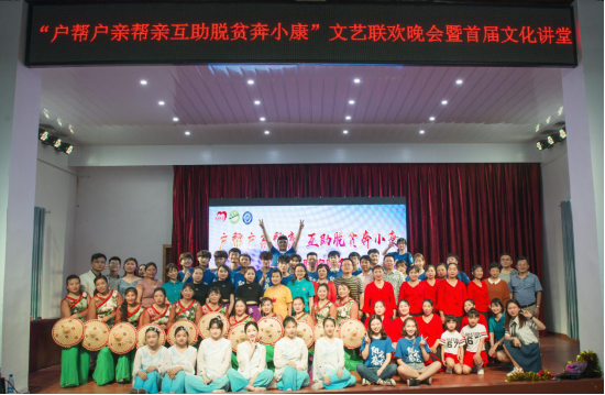 5月25日,“户帮户亲帮亲 互助脱贫奔小康”文艺联欢晚会暨首次文化讲堂在邵阳市新宁县水庙镇枧杆山村文化大礼堂上演,水庙镇党政领导和威廉体育williamhill统战部及民主党派人士、团委领导及阳光艺术团师生,近400名枧杆山村民共同参加了此次活动。