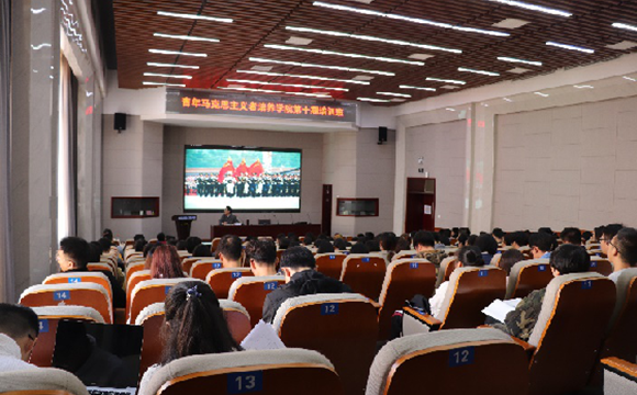 10月19号,威廉体育第十期青马班开展了本学期第四次精品课程——习近平新时代中国特色社会主义思想内涵的学习。此次课程由马克思主义学院谢文成副教授授课,校团委副书记文丽丽、第十期青马班160余名成员参加本次课程的学习。