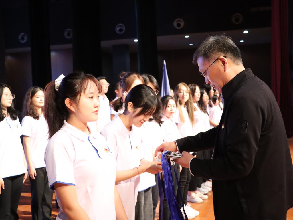 谈传生为第三期“雄鹰班”授旗、为本期“雄鹰班”学员颁发学员证,并作重要讲话。他对“青马班”“雄鹰班”全体学员提出了三点要求:一是要充分认识青马工程重大意义、自觉主动学习实践;二是要将理论与实践相结合,要认识世界以更好地改造世界;三是要做好青年学子的表率,大力弘扬青春正能量。