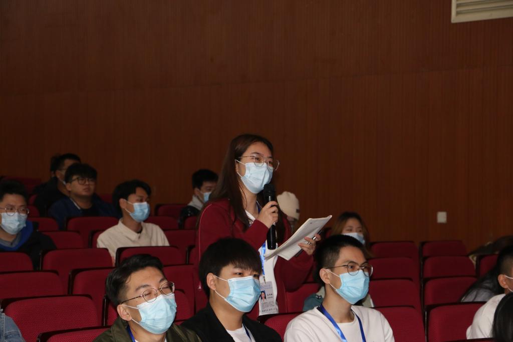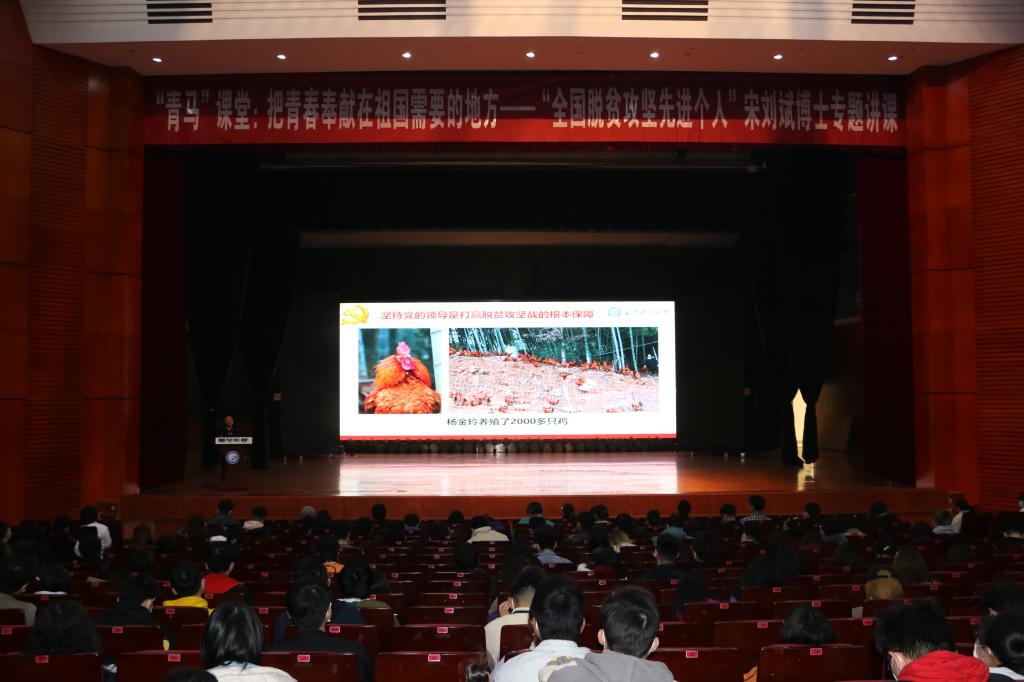 在互动环节,同学们争先恐后地向宋刘斌提问,宋刘斌寄语全体同学:在艰苦奋斗中坚定理想信念,在认真学习中练就过硬本领,在为民服务中发扬奉献精神,激励同学们爱党、信党、护党、为党,为乡村振兴贡献自己的青春力量。