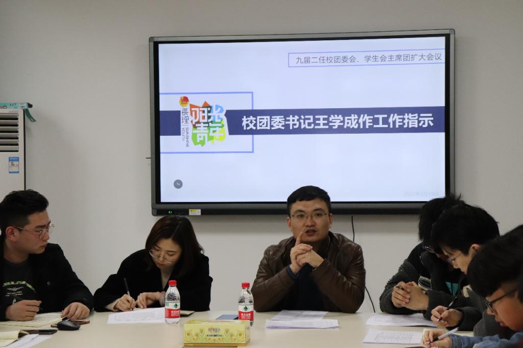 会议伊始,由校学生会主席团成员介绍校团委会、学生会2021年上半年工作计划及注意事项,与会人员进行交流讨论。