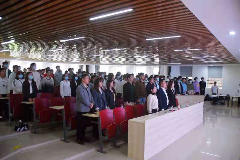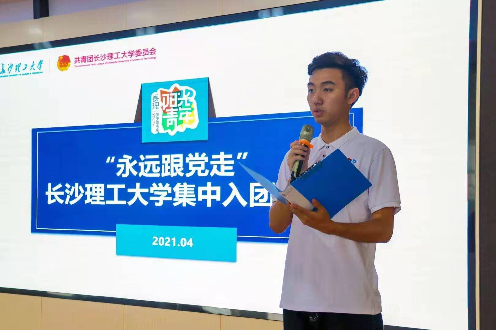 在庄重嘹亮国歌声中,入团仪式正式开始。校团委基层团建部介绍了2020-2021年全校新团员发展情况,校团委书记王学成为新团员代表颁发了团徽,全体新团员在水利学院龙慧颖同学的带领下,共同面向团旗宣誓。电气学院刘强代表新团员发言,表示定当坚定理想、努力学习、乐于奉献,以团员身份严格要求自己,真正做到知行合一,并积极向党组织靠拢。优秀团员代表周利芝代表老团员分享了自己在团组织中学习、工作的经历,号召大家做有理想有担当、有本领有见识、有作为有前途的好青年。
