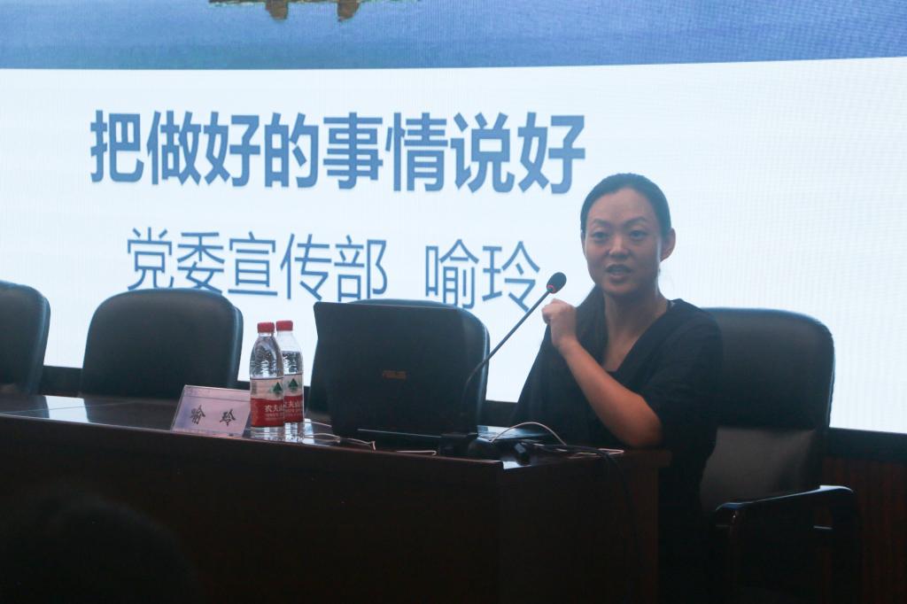 党委宣传部副部长喻玲作 “把做好的事情说好”为主题的宣传工作专题培训。她从新闻的五要素、三特点着手,用往年暑期“三下乡”宣传实例具体分析了投稿为何被拒、为何写这条新闻及如何写新闻三个问题。喻玲指出“好的标题就成功了一半”,并强调应深挖内容精髓,突出展现特点、创新点,正确运用图、文、视频等呈现方式,使实践成果更丰富详实具有吸引力。随后,陈璐莎作安全工作培训,她强调各校级立项团队应严格按照暑期社会实践活动安全提示开展实践活动,做好突发事件以及疫情防控应急预案,实践过程中注意言行举止,展现长理学子精神风貌。最后,校团委会宣传部莫紫鹏就暑期“三下乡”阳光传媒宣传工作具体安排,校学生会实践部杨挺对本次暑期社会实践工作注意事项进行说明。