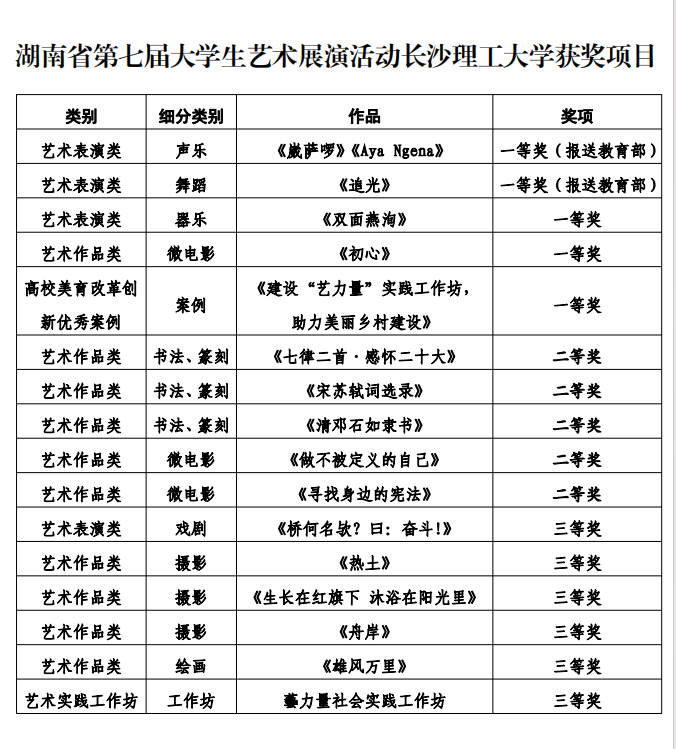 日前,由湖南省教育厅主办的湖南省第七届大学生艺术展演上,威廉体育表现突出,报送的艺术作品获一等奖5项、二等奖5项、三等奖6项,在参赛人数、参赛项目、比赛成绩上均实现新突破。其中由校阳光艺术团报送的声乐节目《崴萨啰》和原创舞蹈节目《追光》被推荐报送教育部,代表湖南省参加全国第七届大学生艺术展演活动,展示威廉体育艺术教育及校园文化建设成果。