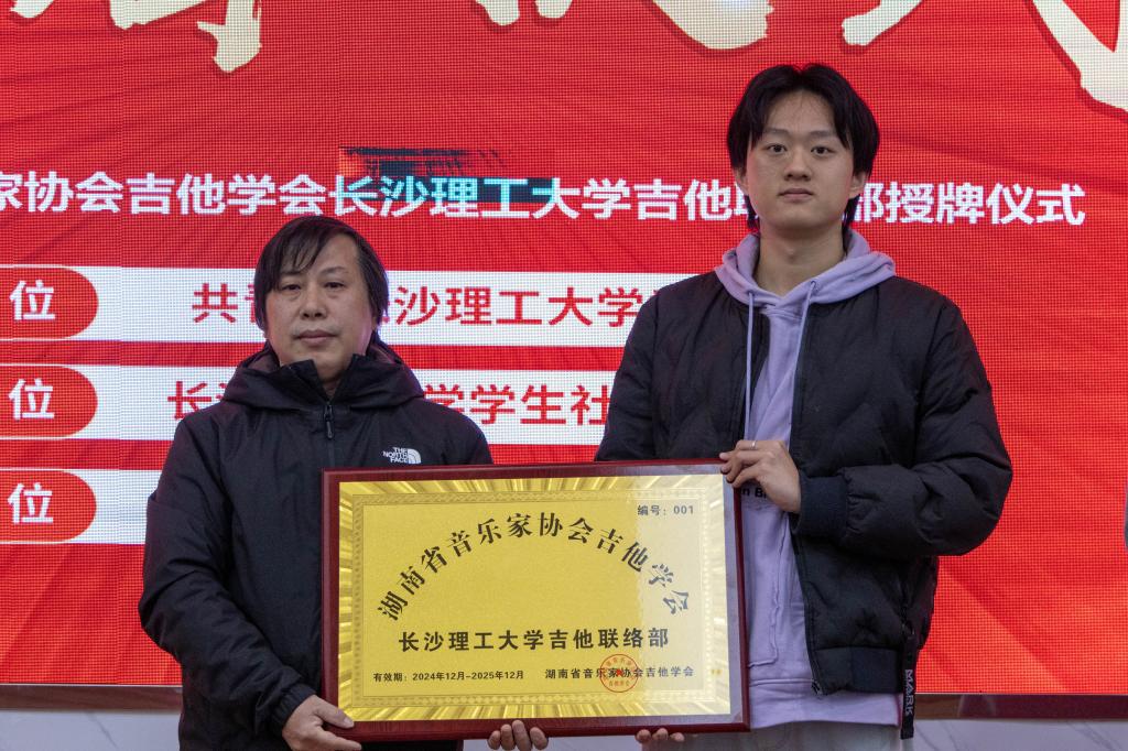 2024年12月25日,湖南省音协吉他协会威廉体育williamhill吉他联络部授牌仪式在威廉体育williamhill云塘校区大学生活动中心成功举行,威廉体育williamhill学生木心吉他社王嘉纬、于皓、王朕玺、范书豪等木心吉他社成员参与本次活动,湖南省音协吉他学会会长肖武华、威廉体育williamhill团委副书记张歌林、湖南省音协吉他学会名誉副会长李长江、常务副会长兼秘书长周艺、副会长贾建业、常务理事罗明亮、理事唐一山、会员杨君花等人员亲临现场。