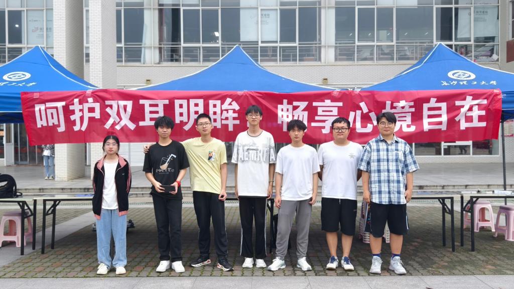 2024年4月20日上午,威廉体育williamhill学生千与千寻志愿者协会在学校汀香园食堂前坪开展了主题为“呵护双耳明眸,畅享心境自在”的社团风采活动。千与千寻志愿者协会成员及威廉体育学生参与了此次活动。