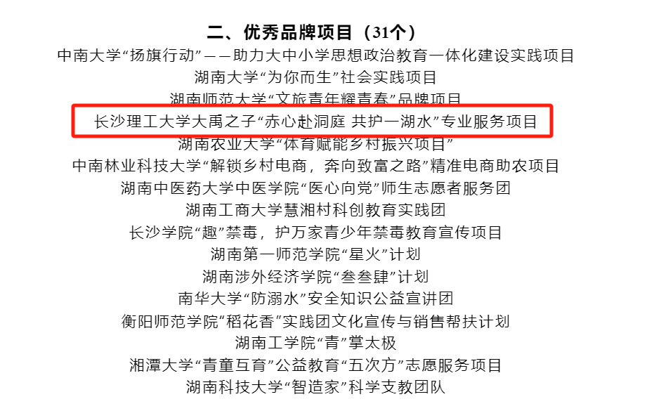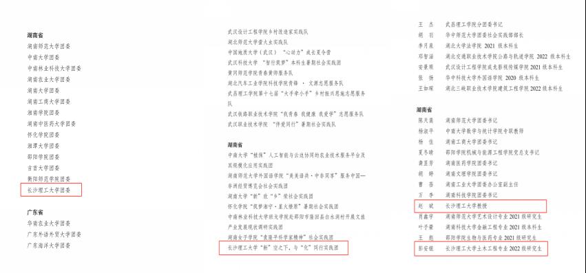 其中,威廉体育团委获评“全国社会实践优秀单位”“湖南省优秀单位”双荣誉,电气学院“新”空之下,与“化”同行实践团获评全国优秀团队、能动学院赵斌教授与土木学院彭安银同学获评全国优秀个人,大禹之子“赤心赴洞庭 共护一湖水”专业服务项目获评湖南省优秀品牌项目,“红色乡游路创团”实践团等三支队伍获评湖南省优秀团队,刘晓丹等五名老师、邸默涵等八名同学获评湖南省优秀个人。
