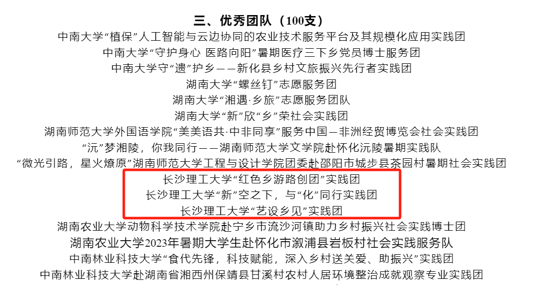 2023年威廉体育团委全面贯彻习近平新时代中国特色社会主义思想,深入学习宣传贯彻党的二十大精神,积极探索实践育人新模式,拓宽育人维度,呈现出新特色,大力开展暑期“三下乡”社会实践活动,在“行走的大思政课”中铸魂育人,引导和帮助广大青年学生在社会课堂中“受教育、长才干、作贡献”。威廉体育2796名学生、242名老师组织了204支队伍奔赴28个省及地区开展暑期社会实践活动,其中国家级团队14支,省级重点团队15支,校级立项团队51支。活动过程被人民日报、新华社、光明网、学习强国、中国教育报、中国青年网等国家级媒体宣传报道70余篇,湖南日报、潇湘晨报、湖南教育新闻网、新湖南、红网等省级媒体宣传报道180余篇,总浏览量超600万,取得良好的实践育人效果,充分发挥了共青团在思想引领和实践育人方面的优势。