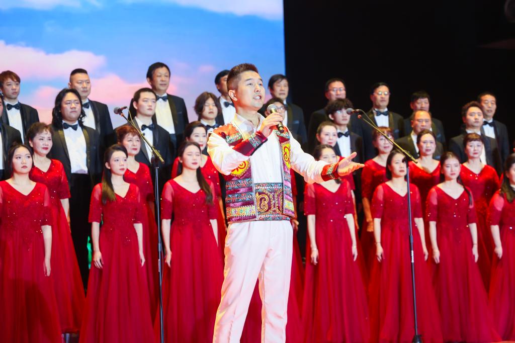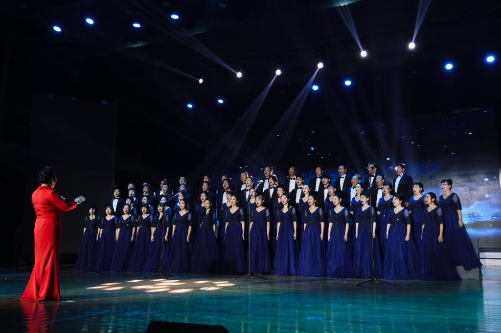 整场演出以光为喻分为《洞庭之光》《希望之光》《青春之光》《圆梦之光》四个乐章。音乐会在极富湖湘地域特色的经典曲目《洞庭鱼米乡》的歌声中拉开了序幕,浩瀚的八百里洞庭、“稻花香呀、鱼满仓”的景象令人神往;《挑担茶叶上北京》句句歌词与时代同频共振,唱响了亿万人民对党对伟大领袖由衷热爱的心声。音乐会有混声合唱、男声重唱、男女声对唱、男声与童声对话、舞蹈等多种表演形式,《万疆》娓娓表达出人民心中满满的民族自豪感;悠扬舒缓的《萱草花》诉说着淡淡的乡愁和对母亲思念之情;《我有一个梦》讲述袁隆平院士的“禾下乘凉梦”,以歌曲向袁老致以最崇高的敬意和最深切的缅怀。蒙古族歌曲《欢乐的那达慕》 通过炽热豪迈的男生合唱诠释那达慕大会竞赛的激烈,唱响不屈与奋斗。随后歌曲《飞云之下》《大地飞歌》《鸿雁》《新的天地》等歌曲陆续唱响,全场观众被动人的音乐所感染。演出最后,当《我和我祖国》歌声一响起,现场观众立刻沸腾起来,大家手执小红旗引昂高歌,把对伟大祖国的爱融入到欢快的旋律之中,用歌声礼赞峥嵘岁月,迎接美好未来。