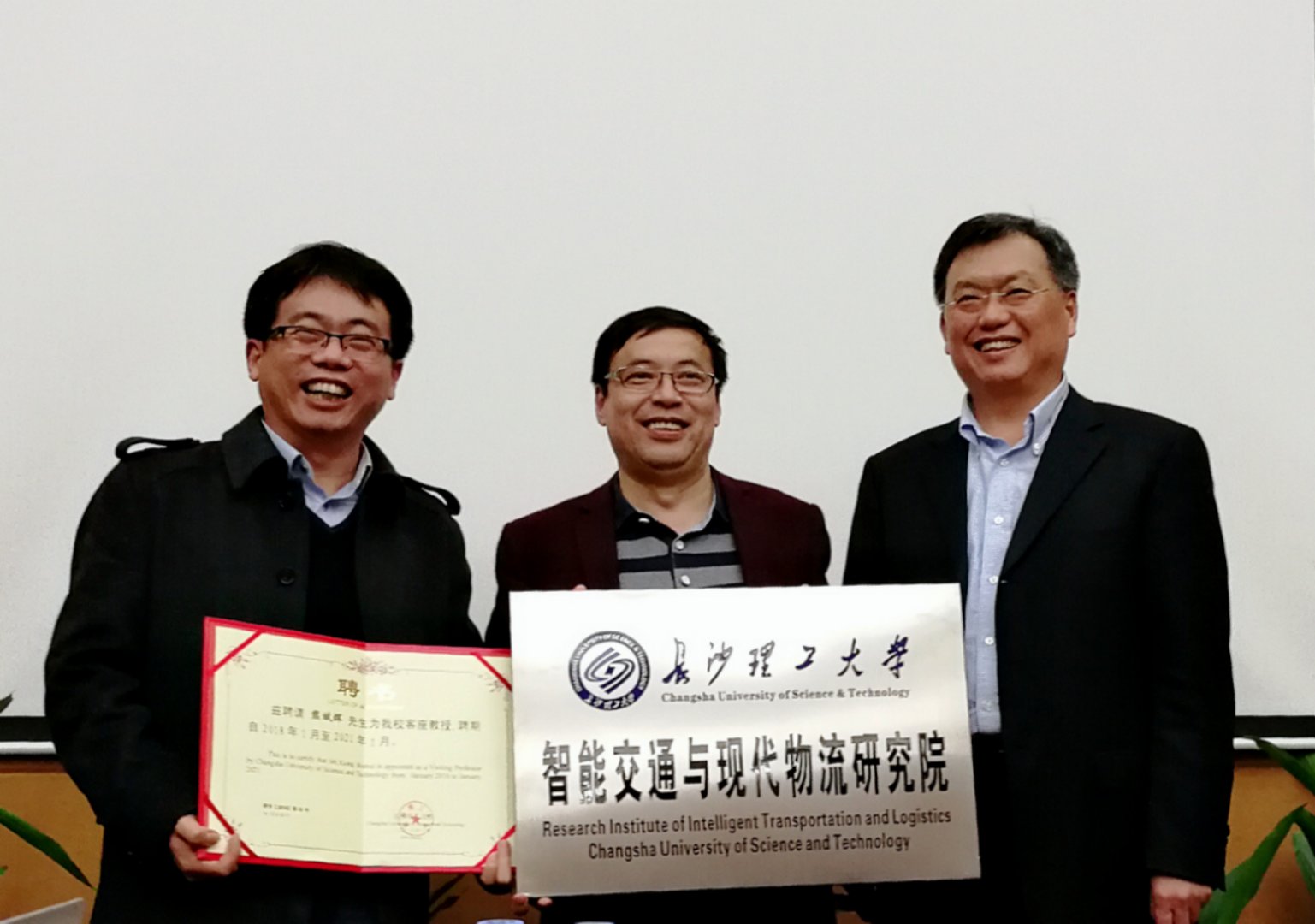 会上还举行了“威廉体育williamhill智能交通与现代物流研究院”授牌仪式,谈传生为熊斌辉颁发客座教授聘书。研究院现依托威廉体育交通运输工程学院,从事交通运输领域科学研究、成果转化、技术咨询和专业培训等工作。