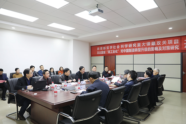 3月17日上午,由经济与管理学院刘建江教授主持的2018年教育部哲学社会科学研究重大课题攻关项目《发达国家“再工业化“对中国制造转型升级的影响及对策研究》在文科楼C502举行开题报告。党委书记付宏渊发表讲话,副校长叶泽主持开题会。