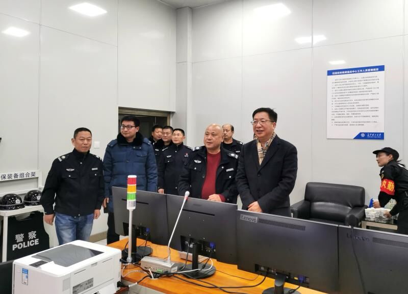 随后,付宏渊、肖向东一行还在校园内进行了检查和走访,在视频指挥中心督查了全校各门岗及重点部位值班情况,询问了留校学生的管理情况,到各门卫室看望了值班的安保人员。听保卫处介绍,处领导都已经放弃了休假带头值班,增加了24小时值班值守的人员数量,除夕仍有30多名职工坚守岗位,付宏渊表示:“万家团圆的日子,你们还坚守岗位,守护师生安全,我代表学校党委、行政、全校师生向你们致敬,给大家拜年!”