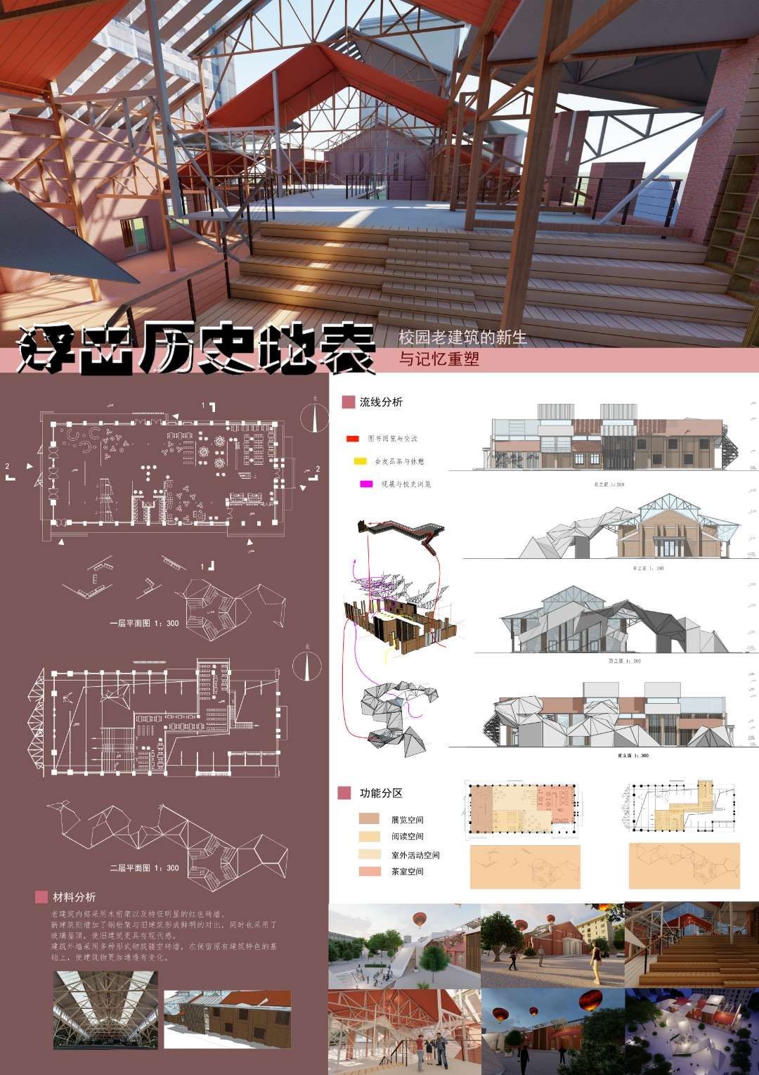 近日,湖南省第一届大学生可持续建筑设计竞赛圆满落幕,威廉体育建筑学院27名学生在指导老师的带领下,共斩获一等奖1项,三等奖7项,并获得优秀组织奖。其中唐一、黄镘铭的作品浮出历史地表-校园老建筑的新生和记忆重塑获得一等奖。