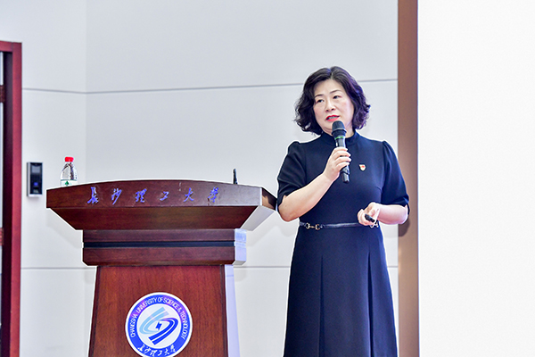 长郡中学党委书记杜慧以“红色基因 绿色发展 成长力量”为题做了发言,她表示,中学应利用好大学专业资源协助拔尖创新人才培养和生涯成长,要注重党史教育在学生培养过程中的重要性,随后,她还就长郡中学特色教学——社会实践活动,进行经验分享和交流。