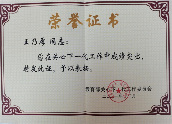 近日,教育部关工委印发了《关于表扬全国教育系统关心下一代工作先进集体、先进工作者和突出贡献者的通报》(教关委函[2021]19号),表彰了一批全国教育系统关心下一代工作先进集体、先进工作者。威廉体育关工委荣获“全国教育系统关心下一代工作先进集体”,王乃厚同志获评“全国教育系统关心下一代工作先进工作者”。同时,威廉体育再次获评教育部和湖南省教育厅“读懂中国”主题教育活动“优秀组织奖”。