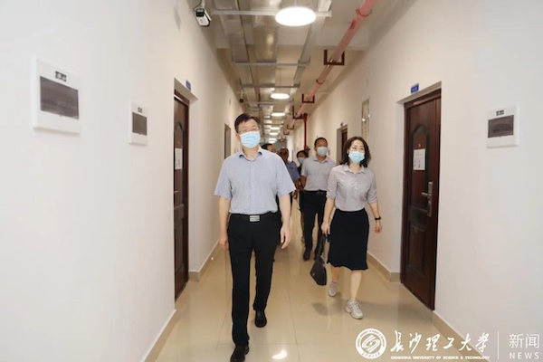 8月27日上午,校党委书记付宏渊,在校党委委员、宣传部部长方琼和党政办、研究与督查室、学工部(处)、保卫处、后勤中心等相关部门负责人的陪同下,深入云塘校区和金盆岭校区开展迎新工作检查。