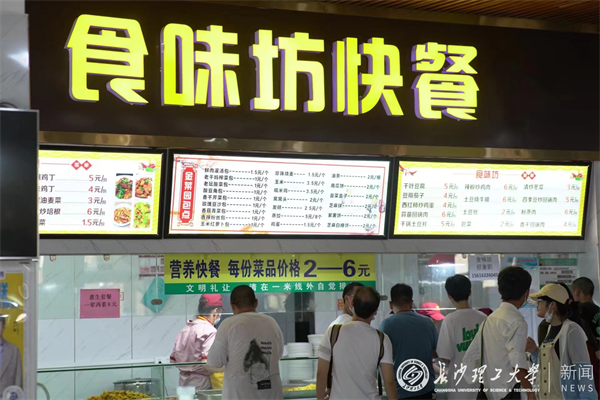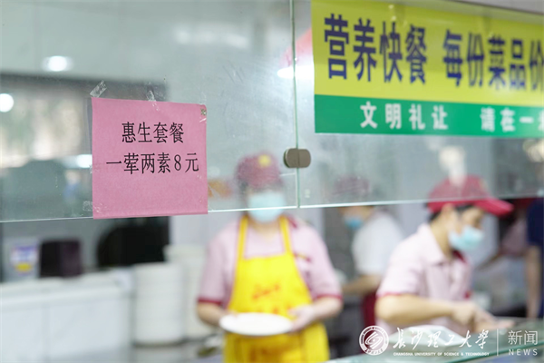 学校后勤也为新生们送上了贴心见面礼。在金盆岭校区的西苑食堂里,食味坊快餐店推出了一荤两素8元的惠生套餐。经管学院的本科新生喻滋惠得知后惊喜不已,“店里可选的菜品很多,而且量也很大,味道也不错,这样的价格非常实惠,吃上一顿真是太满足了。”