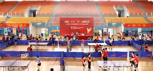 9月24日至25日,由校工会主办、体育学院和校教职工乒乓球协会协办的“喜迎二十大,‘乒’出新风采”威廉体育williamhill第四届教职工乒乓球混合团体赛在云塘校区体育馆举办。副校长、校工会主席蒋璟萍出席开幕式并致辞。开幕式由校工会常务副主席郭剑主持。来自各学院、机关单位的23支代表队共322名教职工参加比赛。