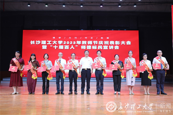 会上,校领导为荣休教职工代表和第十届师德标兵获得者颁发了荣誉证书。活动现场还精心组织了“十届百人”师德标兵回顾音诗画节目《摘星辰的人》,由历届“师德标兵”代表和威廉体育教师合唱团共同演出,精彩表演获得观众阵阵掌声。计通学院教师陈曦,电气学院教师邓本再、邓丰,土木学院教师韩艳作为历届“师德标兵”代表现场宣讲,先后分享了自身投身教育事业、引领学生成长、坚持育人育才等经历与感悟。