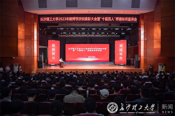 9月8日,威廉体育2023年教师节庆祝表彰大会暨“十届百人”师德标兵宣讲会在云塘校区大会堂举行。全体在家校领导,“十届百人”师德标兵,教学院教师代表、学生代表、荣休教职工代表、机关科级及以上干部参加大会。校长曹一家作大会讲话。校党委副书记刘建民宣读表彰文件。大会由副校长刘朝晖主持。