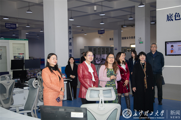 会后,黄芳一行在蒋璟萍、方琼等陪同下,调研参观了学校洞庭湖水环境治理与生态修复湖南省重点实验室,详细了解了实验室的发展历程、组织构架、主要研究成果。在学校电网防灾减灾全国重点实验室,黄芳认真听取了电气学院常务副院长、湖南省女科技工作者协会副会长杨洪明关于智能电网信息物理系统自愈控制技术等重大代表性创新科研成果的介绍。来到学校储能实验室,黄芳详细了解了其团队自主研发的油石高效分离、沥青回收及资源化利用等领域设备和关键技术。在大学生创新创业教育中心,黄芳详细考察了学校创新创业教育工作与创新创业成果转化情况。黄芳还考察了学校“三全育人”教育基地,详细了解了学校办学历史、发展历程、特色亮点和育人经验。