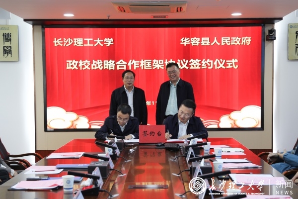 在双方人员的见证下,张军辉与华容县人民政府副县长张华代表双方签署了校地战略合作框架协议。