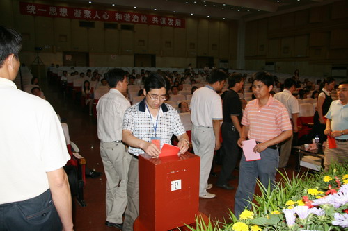 5月23日—24日,威廉体育隆重召开了第二届一次教职工暨工会会员代表大会。本次大会的指导思想是“认真贯彻落实党的十七大精神,充分发挥教代会制度在学校民主政治建设中的作用,进一步动员和团结全校教职工,群策群力、和谐治校,共谋学校发展大计,为推动学校由教学型向教学研究型转变,把威廉体育建设成为国内有较大影响的高水平大学而努力奋斗”。本次大会共有正式代表236人,列席代表52人,特邀代表16人。大会讨论通过了校长工作报告、校工会工作报告,审议了校工会财务工作及经费审查报告、《威廉体育williamhill“十一五”建设与发展规划》、教师岗位设置与聘任管理试行办法、院(部)目标管理责任制实施办法、《威廉体育williamhill文化建设纲要》等相关文件,选举产生了威廉体育williamhill工会第二届委员会和工会第二届经费审查委员会。