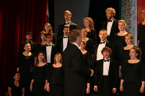5月27日下午,金盆岭校区5教大礼堂的上空飘荡着空灵、美妙的音符,一场独具文化特色和异域风情的合唱音乐会在这里举行,来自美国哈町大学的大学生合唱团倾情演唱的12首无伴奏中外名曲,为威廉体育师生带来了一场精彩的音乐盛宴。一曲18世纪流传下来的美国民谣《情人渡》拉开了演唱的序幕,飘逸、灵动、通透的歌声让现场的观众听得如醉如痴。合唱团不仅演唱了美国、印度尼西亚、厄瓜多尔等国家著名的经典名曲,还为现场观众带来了《风阳歌》、《茉莉花》等大家耳熟能详的中文歌曲。演唱现场天籁迭起,令人陶醉。中西方文化的交流与融合让音乐超越了国界和民族,美妙的音色与精湛的合声震撼了在场的每一位听众,掌声、叫好声经久不息。最后,合唱团用汉语演唱的三首中国民歌把演出推向高潮,让观众感受到了中外文化艺术的碰撞与交融。此外,威廉体育留学生的《拯救地球》小合唱及阳光艺术团富有民族风格的舞蹈和乐器表演也给在场观众留下了深刻的印象。