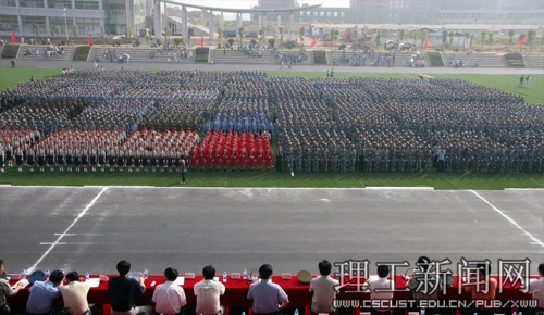 首先,校长郑健龙检阅了由65支学生方队组成的受检队伍。在接下来的分列式上,各方队或持枪或徒手,迈着整齐一致的步伐经过主席台前,他们昂扬的的精神状态展现出08级新生的优良风貌和军训成果。
