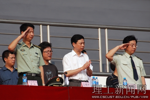 9月22日上午八点,随着庄严的升国旗仪式,威廉体育2008级新生军训阅兵式分列式拉开了序幕。校党委书记王耀中、校长郑健龙及全体校领导、承训部队——国防科技大学指挥军官基础教育学院首长、校军训领导小组成员、各学院党政主要负责人出席了阅兵式分列式。仪式由副校长柳见成主持。