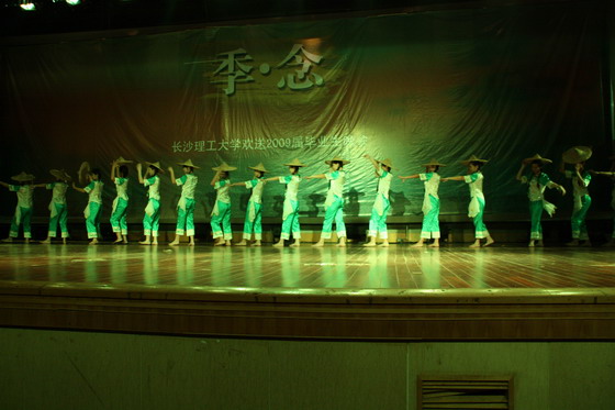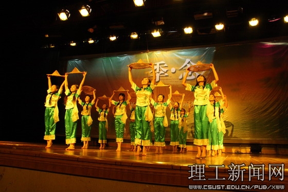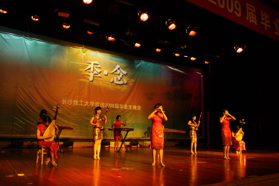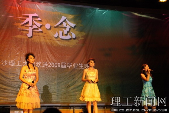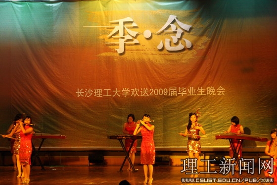 欢送2009届毕业生晚会主题为“季.念”,分春、夏、秋、冬四个篇章。晚会在激情热烈的民乐合奏《奔腾》中拉开帷幕。