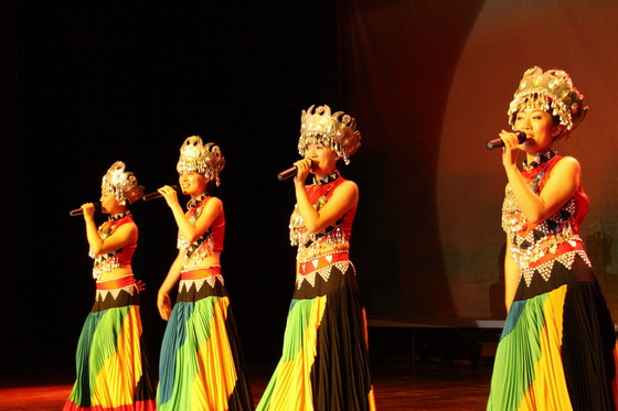 在大型舞蹈《呀吙咿嗬》中,历时两个半小时的晚会,圆满落下帷幕。