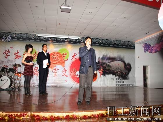 开幕式上,校团委副书记方琼对本届学生科技文化艺术节和寝室文化艺术节做了介绍;李明副书记在讲话中指出:学生科技文化艺术节是校园文化建设的重要载体,要求各有关单位精心组织好各项活动,要让广大学生积极参与,要让学生在文化艺术的熏陶中陶冶情操、增强修养、提高素质。接着李明副书记庄重宣布:第七届学生科技文化艺术节暨第六届寝室文化艺术节开幕。